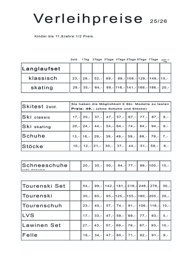 Skiverleih Skiservice Schneeschuhverleih Shop Information